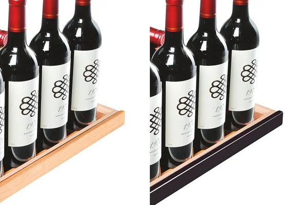 Questo tipo di ripiano si basa su un sistema brevettato da EuroCave più di 10 anni fa. Permette di accogliere qualsiasi tipo di bottiglia (tra quelle compatibili) grazie ad un sistema articolato che consente di disporre le bottiglie anteriori a Vista, leggermente inclinate, per una presentazione pratica ed elegante